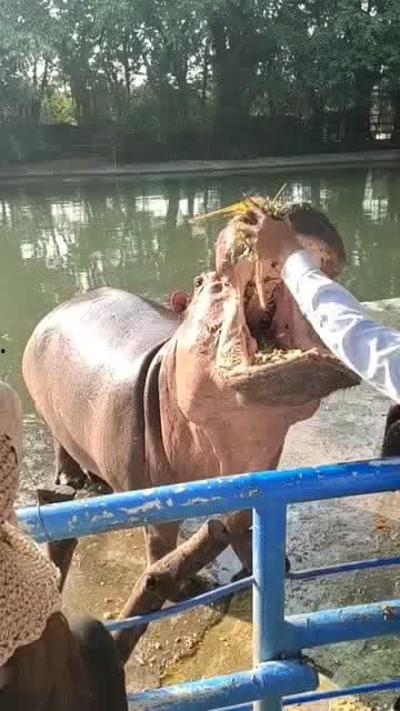 河马吃瓜,游客的欢乐时光